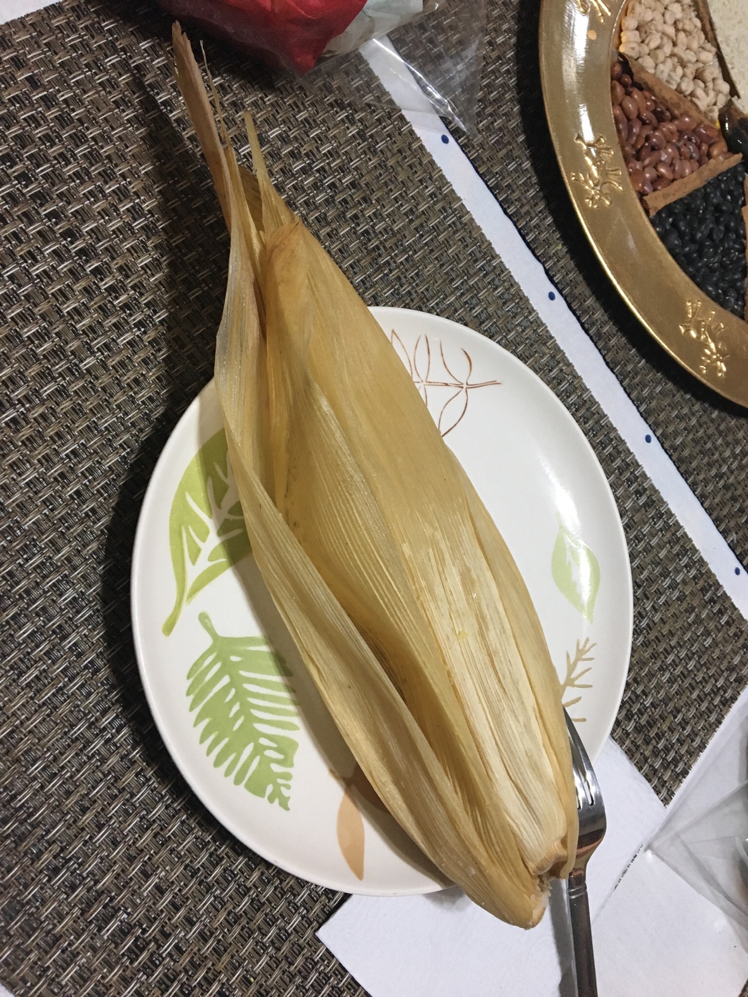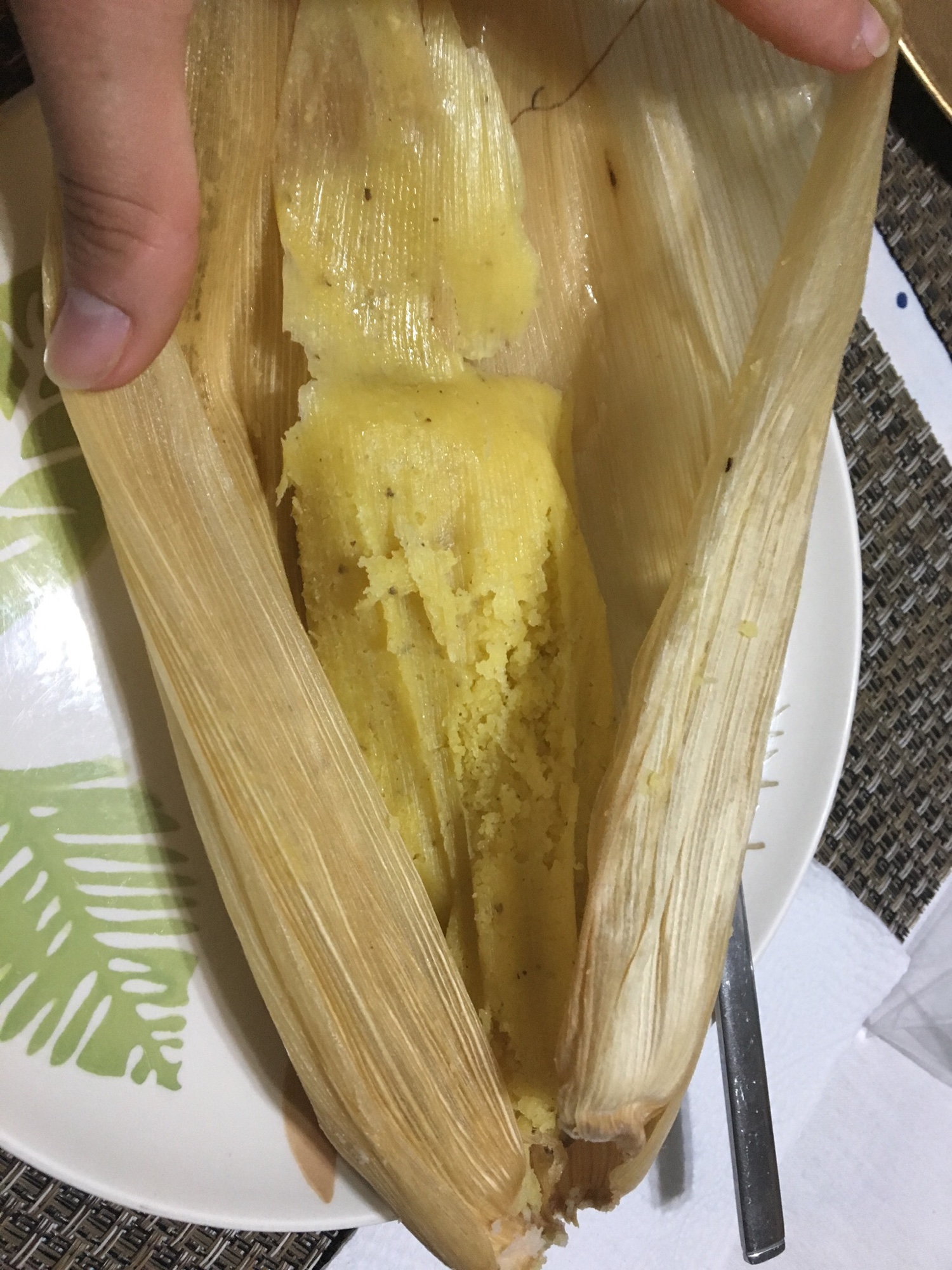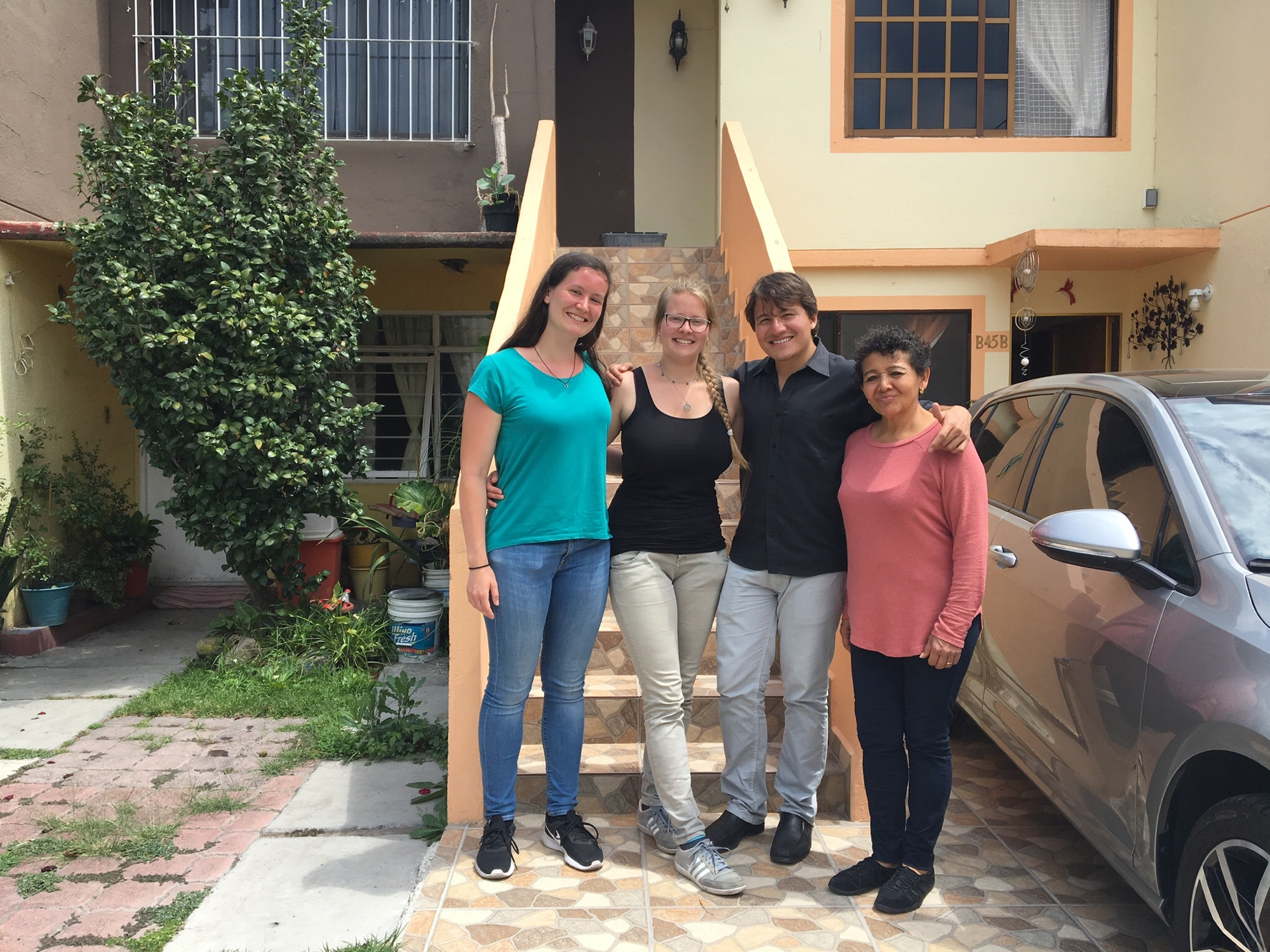 Da dieser jedoch noch unter der Dusche stand öffnete uns seine Mutter, die wir bereits am Sonntag kennen gelernt hatten. Sie begrüßte uns genau so herzlich, wie wir sie in Erinnerung hatte und erklärte uns direkt, dass dies auch unser Zuhause sei und wir Teil ihrer Familie. Dadurch fühlten wir uns nicht nur direkt sehr willkommen sondern tatsächlich ein bisschen wie zuhause. Ebenfalls lautstark begrüßt wurden wir von ihrem Hund, einem deutschen Schnauzer. Kurz darauf kaum auch Jesús aus dem Bad und es gab für alle Frühstück. Zunächst Mango und Kaktusfeige und anschließend Tamales, die sie extra für uns besorgt hatten. Zunächst süße mit Ananas und anschließend herzhaft mit Mole und Schweinefleisch. Dazu gab es eine süße Milch.