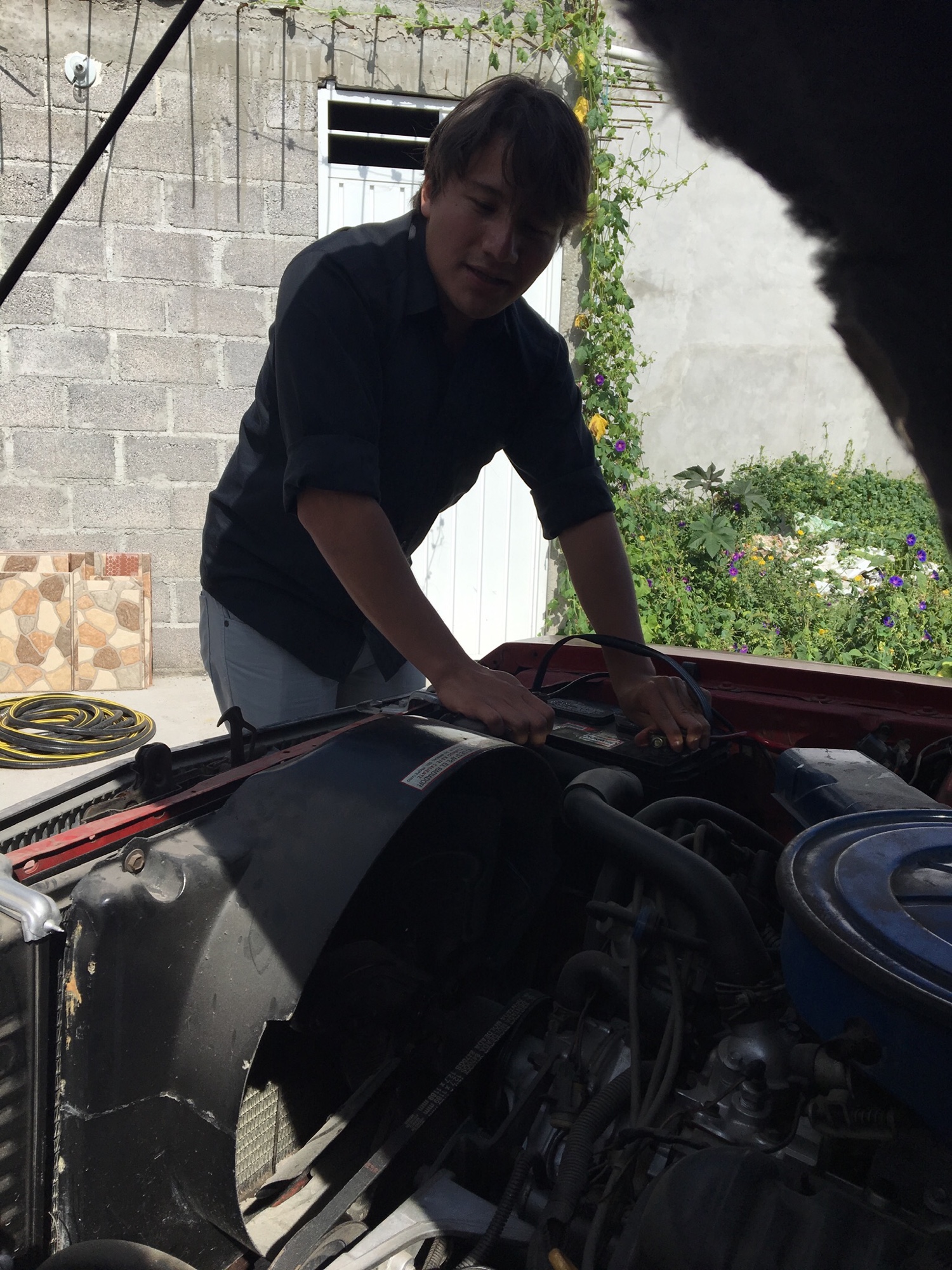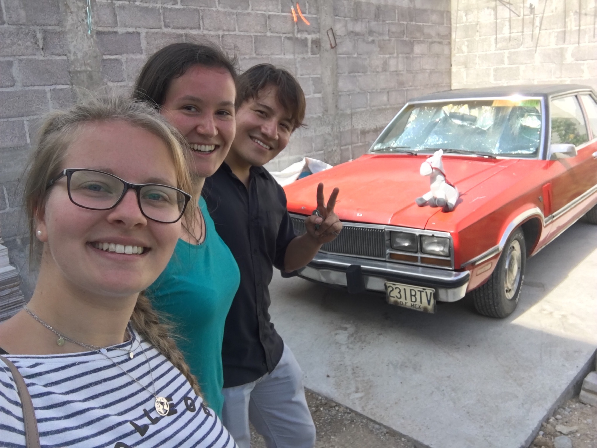 Anschließend wollte uns Jesús gerne mehr aus der Gegend zeigen und nahm uns mit in die Stadt. Zuvor wollte er uns jedoch noch seinen Oldtimer präsentieren, der ein kleines Stück vom Haus entfernt stand. Als wir aus der Nachbarschaft, die im übrigen abgesperrt und nur durch ein bewachtes Tor zugänglich ist, herausgefahren waren fragte er mich ob ich noch einmal fahren wollte. Selbstverständlich wollte ich gerne. Wobei dort nicht die größte Herausforderung der Verkehr sondern die Schlaglöcher sind. Sein Oldtimer steht in einem abgesperrten Hinterhof. Er hat diesen von seinem Vater geerbt und arbeitet seit Jahren daran verschiedene Teile zu erneuern. Der gesamte Motor ist bereits restauriert und läuft ohne Probleme. Er ist auf jeden Fall sehr stolz auf sein Auto!