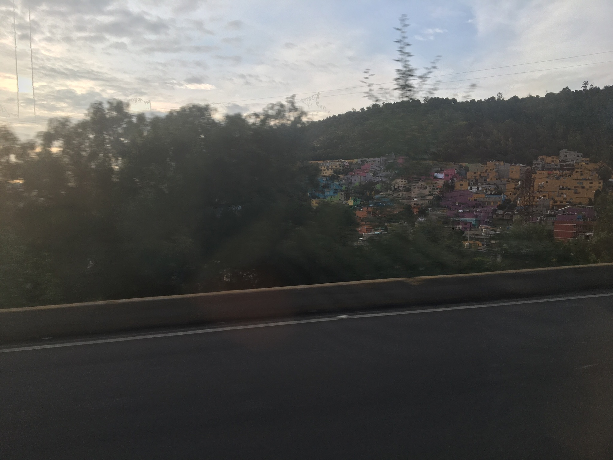 Unterwegs versuchten wir uns sogar ein wenig mit dem Fahrer zu unterhalten, auf Spanisch natürlich. Er fragte uns ob er vor Ort warten sollte und uns dann wieder zurück bringen, was wir aber verneinten, da die Zeit zu lang gewesen wäre. Wir erzählten, dass wir einen Freund besuchen würde und bereits seit einigen Tagen im Land wären. Er fragten uns daraufhin wie wir Mexiko fanden und was wir am Unabhängigkeitstag erlebt hatten. Insgesamt haben wir uns auf jeden Fall ganz gut geschlagen, dafür das wir kein Spanisch können.