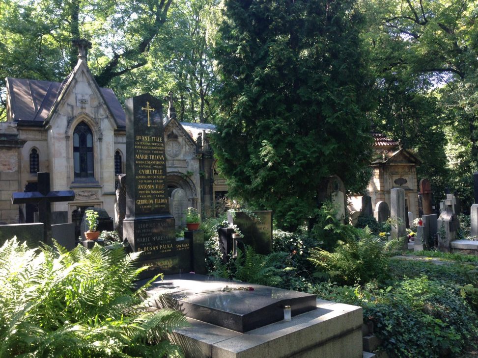 Gestärkt ging es bei schönstem Wetter weiter Richtung neuem jüdischen Friedhof. Dort liegt neben Opfern des Holocaust auch Franz Kafka begraben. Wie man merkt lässt der einen in Prag nicht los. Jedoch war es nicht so ganz einfach bis auf den jüdischen Friedhof zu kommen da in unserer Karte keinerlei Eingang eingezeichnet war. Der kürzeste Weg um bis überhaupt an den jüdischen Friedhof zu kommen führte uns zuvor jedoch über einen weitaus größeren Friedhof. Der Olšany Friedhof ist der größte in Prag und hat 2 Millionen Gräber. Dies ist besonders durch die Dichte der Gräber auffällig.