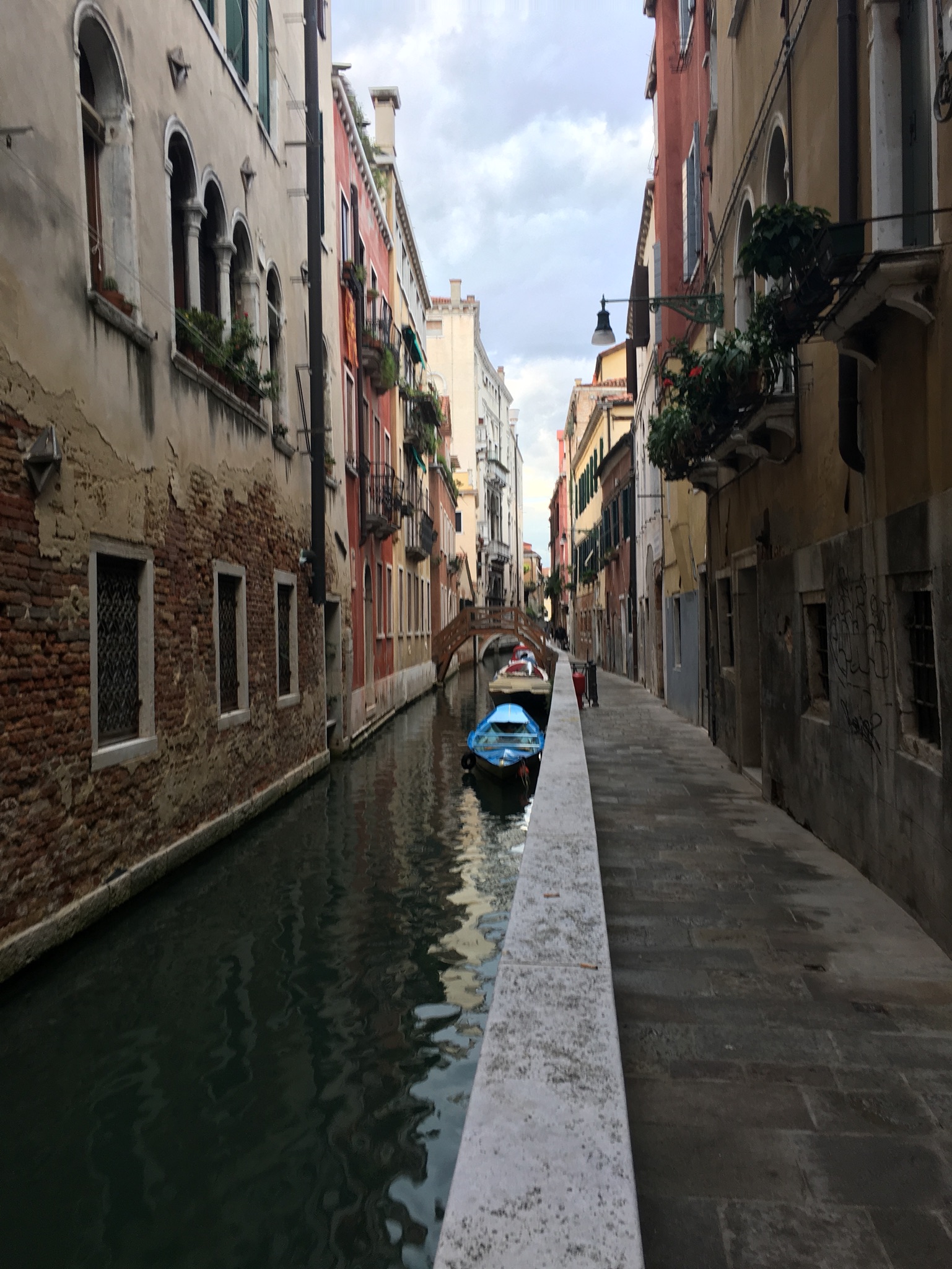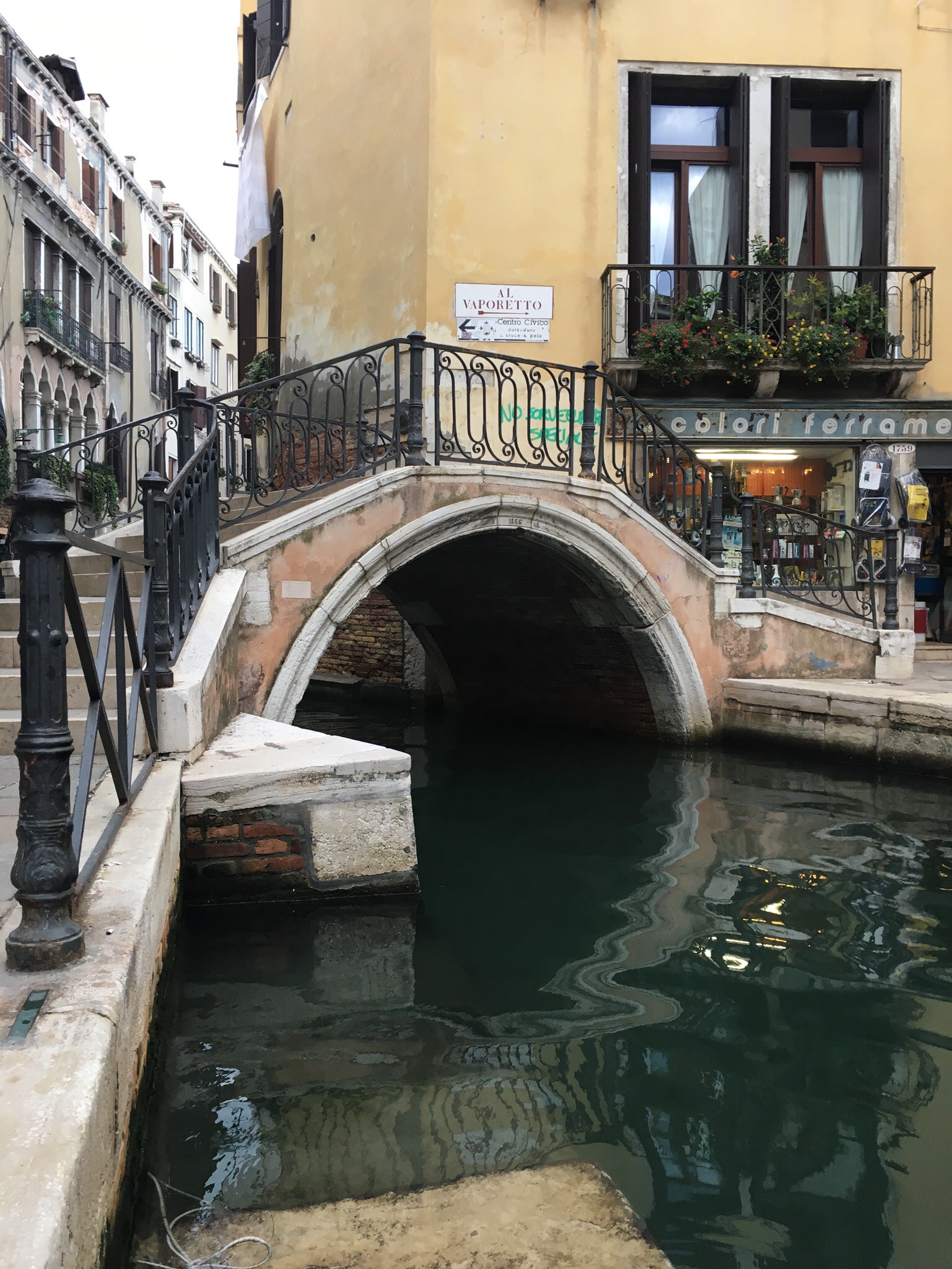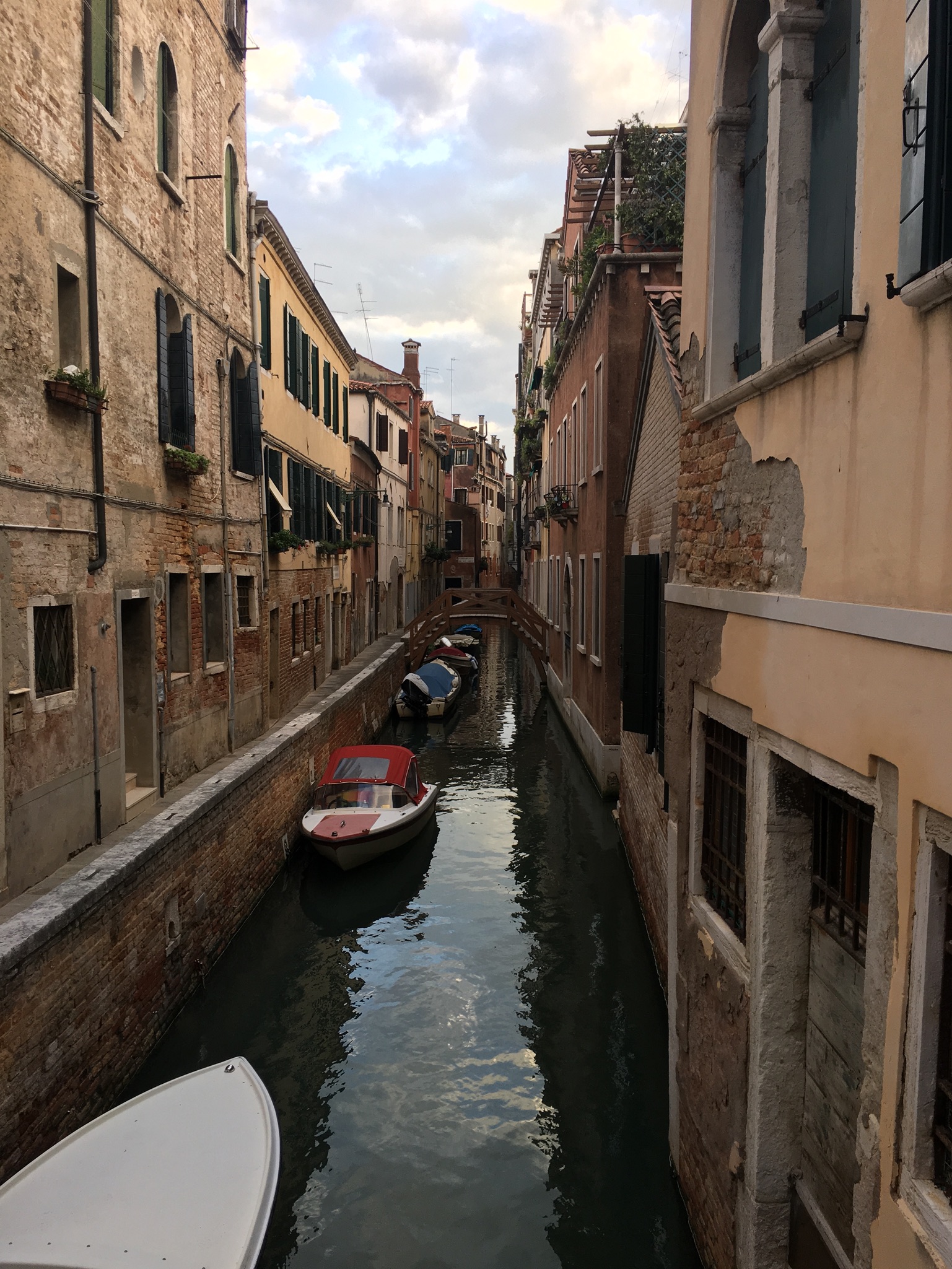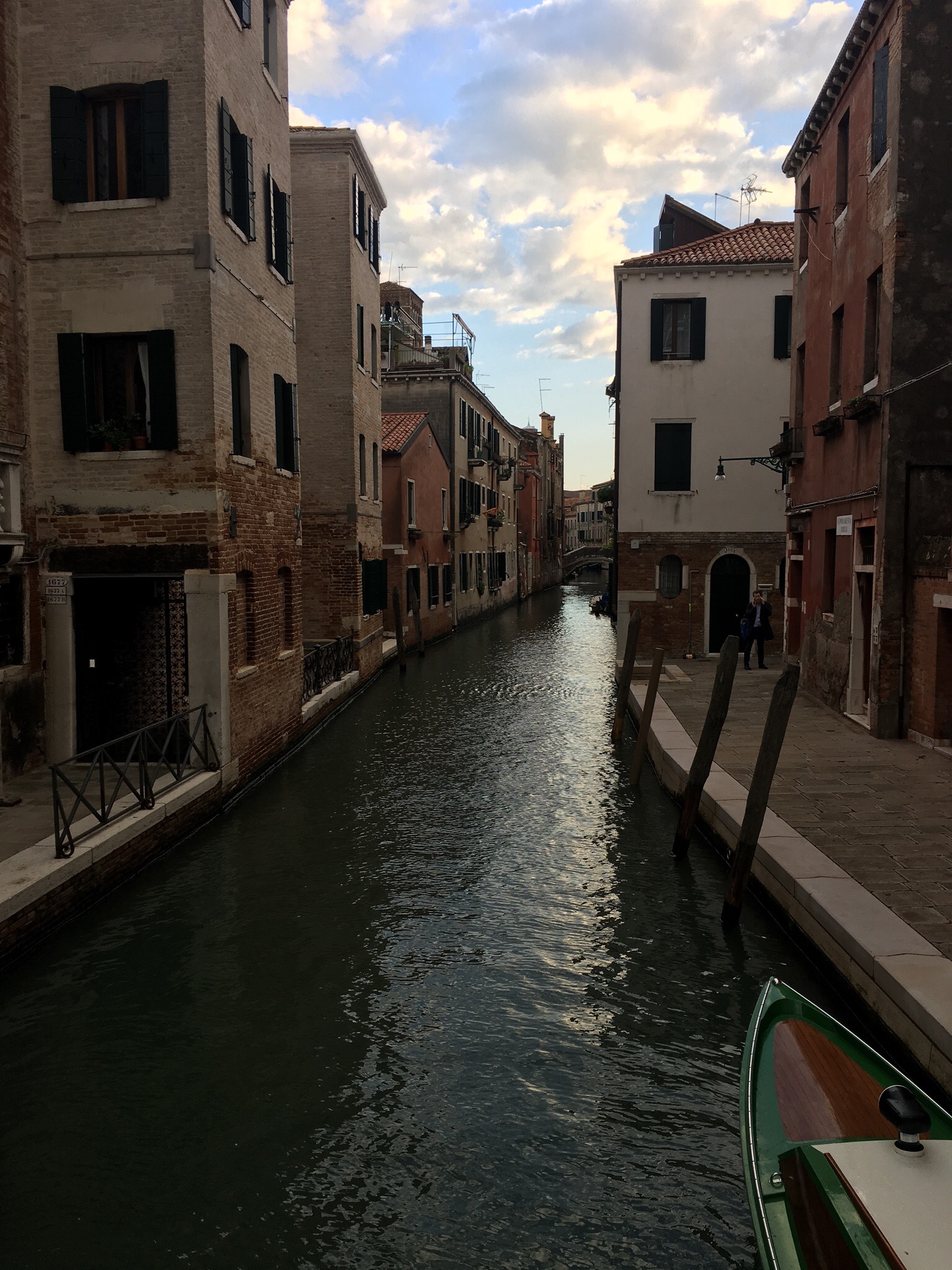 Sightseeing haben wir an diesem Abend nicht mehr gemacht, sondern sind einfach ein paar Stunden, abseits der Touristen, durch die kleinen verwinkelten Gassen geschlendert. Wir haben zwar auch Paare in Gondeln gesehen, leider war jedoch kein Gondoliere dabei, der Opern gesungen hat. Das hätten wir gerne gesehen und gehört. Der Preis für eine Gomdelfahrt ohne Gesangseinlage liegt tagsüber bei 80€ für 30 Minuten. Abends ist der Spaß noch mal 20€ teurer.