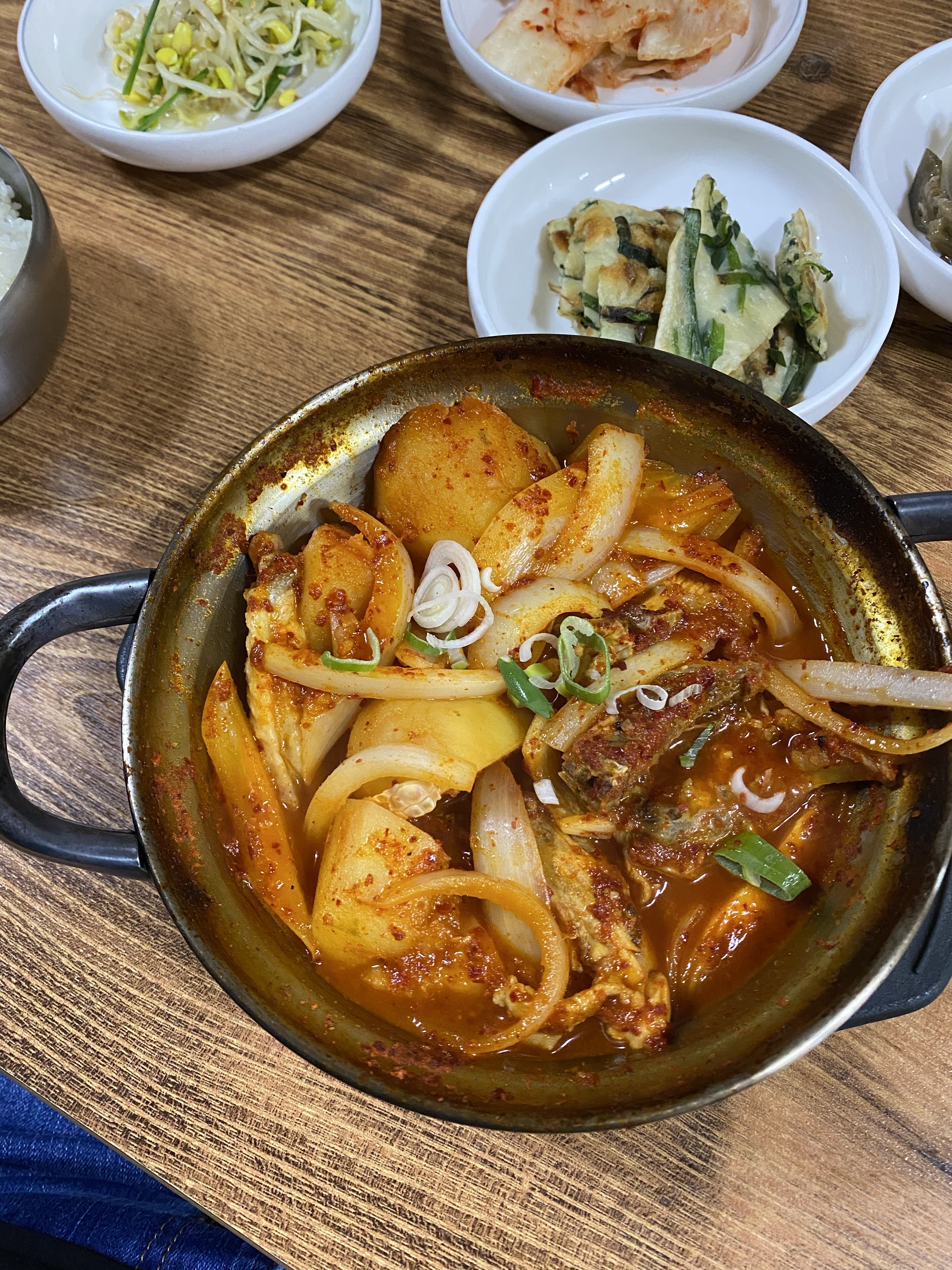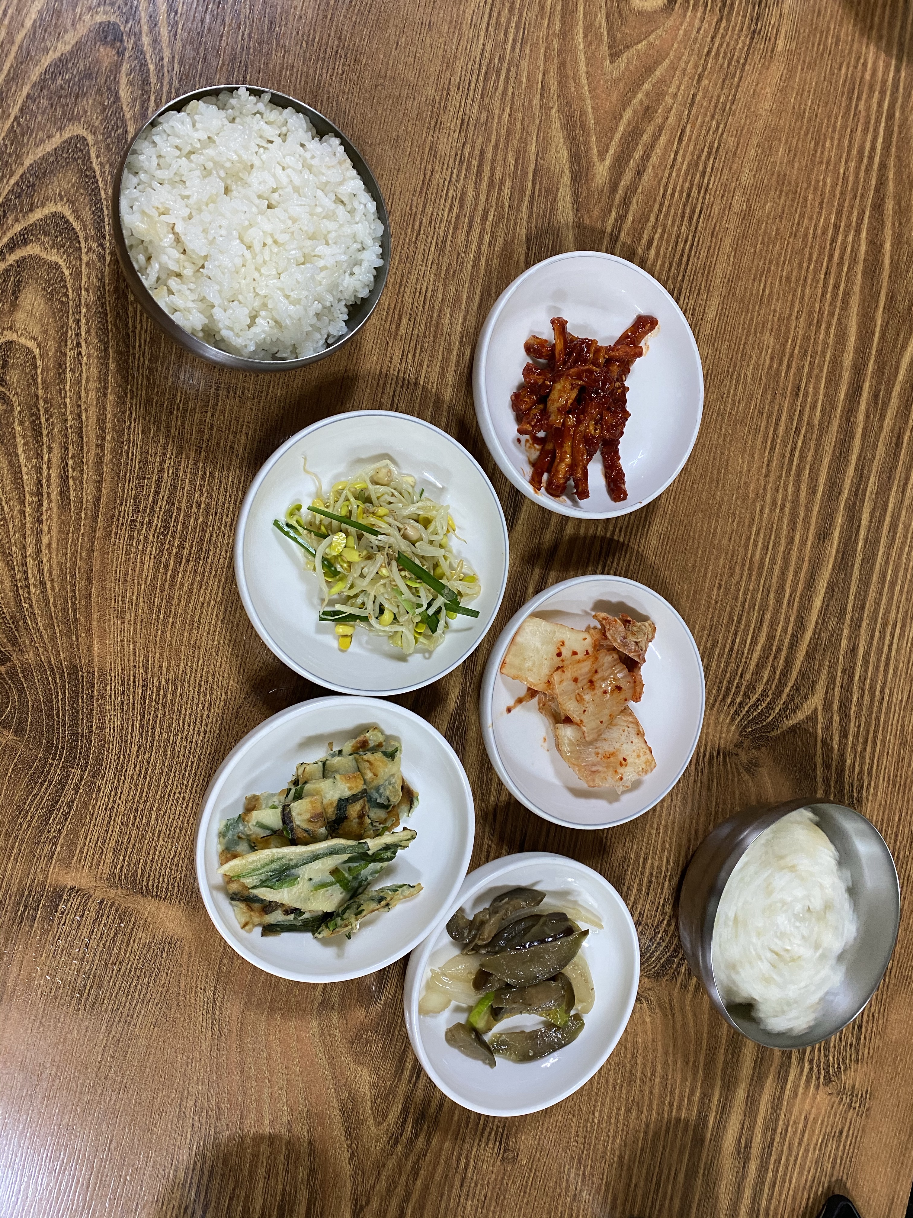 Innerhalb von 5 Minuten war die Sache erledigt, und uns erwartete der Rückweg von 1 Stunde erneut. Abends treffen uns erneut mit einer ganzen Gruppe Leute zum Abendessen, aber nachdem wir uns nicht einig werden konnten wo wir essen gehen teilt sich die Gruppe kurzerhand und ich ging mit Jan und Dominik zu einem winzigen Laden der mir von einigen Koreanern aus einer der Vorlesungen empfohlen wurde. Der Laden war sehr einfach und bot auch nur zehn verschiedene Gerichte an. Die Besitzerin sprachen kein Englisch und da wir kein koreanisch sprechen mussten wir uns auf den Google Übersetzer verlassen was die Auswahl der Gerichte angehen. Teilweise wurde dann „Spring auch meinen Rücken“ und „Balleintopf“ übersetzte, wodurch unsere wenigen Sprachkenntnisse zum Einsatz kamen. Allerdings klappt dies erstaunlich gut und wir alle bekamen ein sehr leckeres, dennoch etwas scharfes Essen.