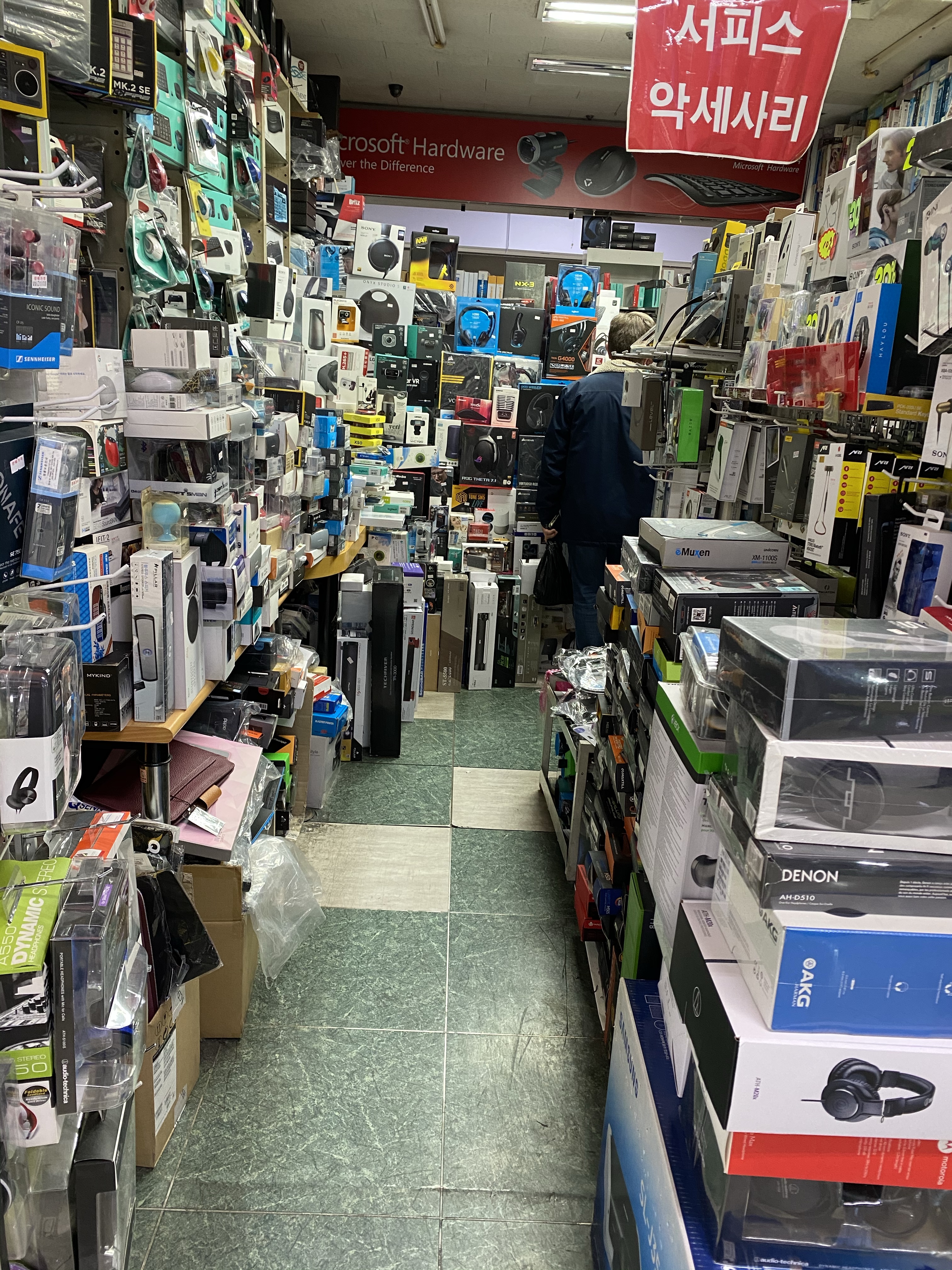 Für Freitag war geplant ein Ausflug zum Technik Markt nach Yongsan zu machen. Dort sollte es viele kleine Läden geben, welche gebrauchte Technik zu günstigen Preisen anbieten. Leider war der Markt enttäuschend, da es sich dabei nicht um ein Markt im eigentlichen Sinne handelte sondern eher verschiedene Gebäude in den kleinen Läden untergebracht waren, die jedoch alle sehr chaotisch waren. Viel der Technik wirkte sehr veraltet und macht nicht unbedingt den Eindruck, dass sie noch benutzt werden kann. Auch gab es neben Kameras, Handys und Beamern kaum andere Geräte. Trotzdem war es interessant, sich die völlig zugestellten Läden anzusehen.