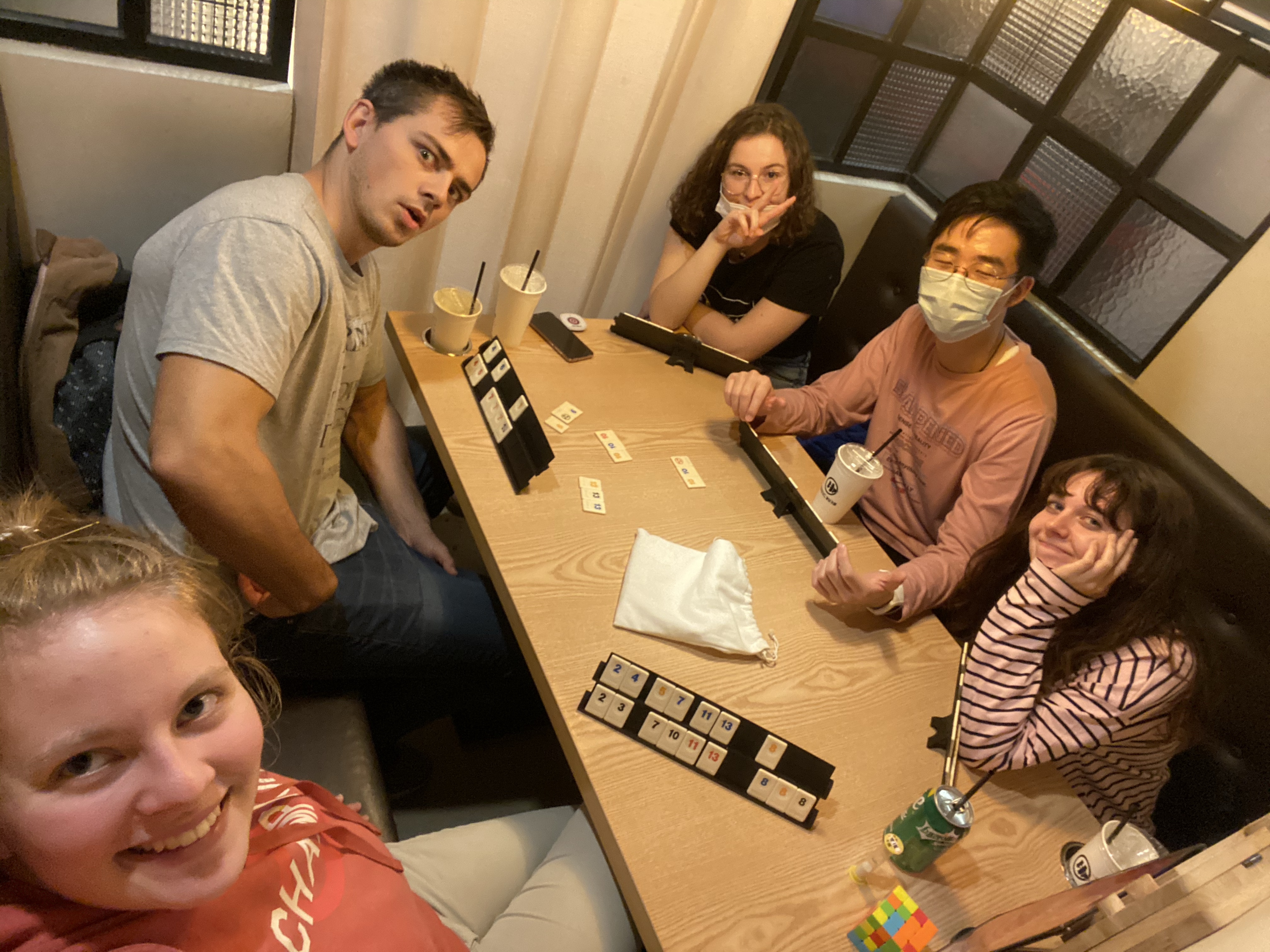 Neben Billiard spielte ich noch einige Runden “Double” gegen Anaïs, die ich leider alle verlor, “The Game”, und abschließend eine Runde Rummicub mit allen zusammen.